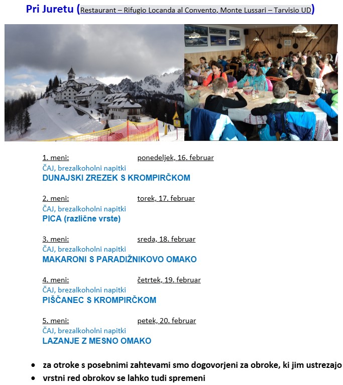 Med zimskimi počitnicami od 16. do 20. februarja 2026 spet organiziramo petdnevni, že 17. smučarski tečaj, tokrat na smučišču v Trbiž/Sv. Višarje za učence/ke devetletke po naslednjem programu: